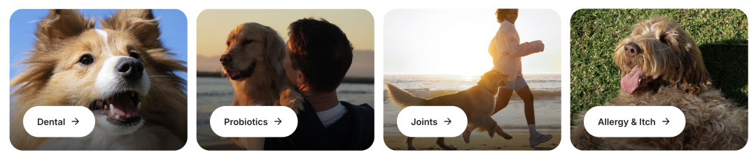 PetLab Co.的品牌初心是“預(yù)防寵物健康問題”,所以它沒有做“全品類保健品”,而是聚焦4大高頻痛點(diǎn):關(guān)節(jié)、口腔、皮膚、消化——這其中,關(guān)節(jié)保健產(chǎn)品占總銷售額的42.67%,正是因?yàn)閯?chuàng)始人親身經(jīng)歷了Krystal的關(guān)節(jié)炎痛苦。