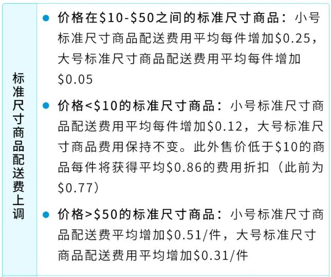平均每件售出商品的FBA物流費用增加 0.08 美元,整體漲幅低于商品平均售價的0.5%。