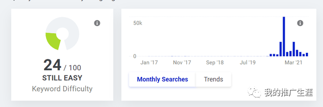 關(guān)鍵詞一:這個關(guān)鍵詞的seo難度是59,kwfinder一般查詢的seo難度會比其他的工具小,這個59讓人感覺不敢動手。