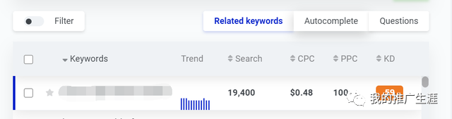 下面來說下廣告跑的兩款產(chǎn)品,利用kwfinder查詢的關(guān)鍵詞seo難度,